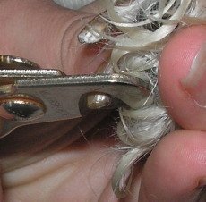 Cut off the hook part of the nail, again, don’t cut flush with the quick.