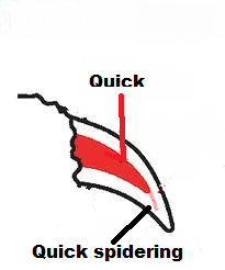 On some nails, the quick has a small vein that spiders away from the bulk of the quick.