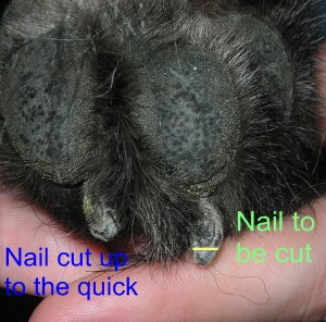 Many dogs that have had their nails cut too short, may be foot shy and may even attack you if you try to cut their nails. Even a groomer or vet may not be able to cut them. For dogs with this problem, I suggest simply filling them with a nail file or emery board.